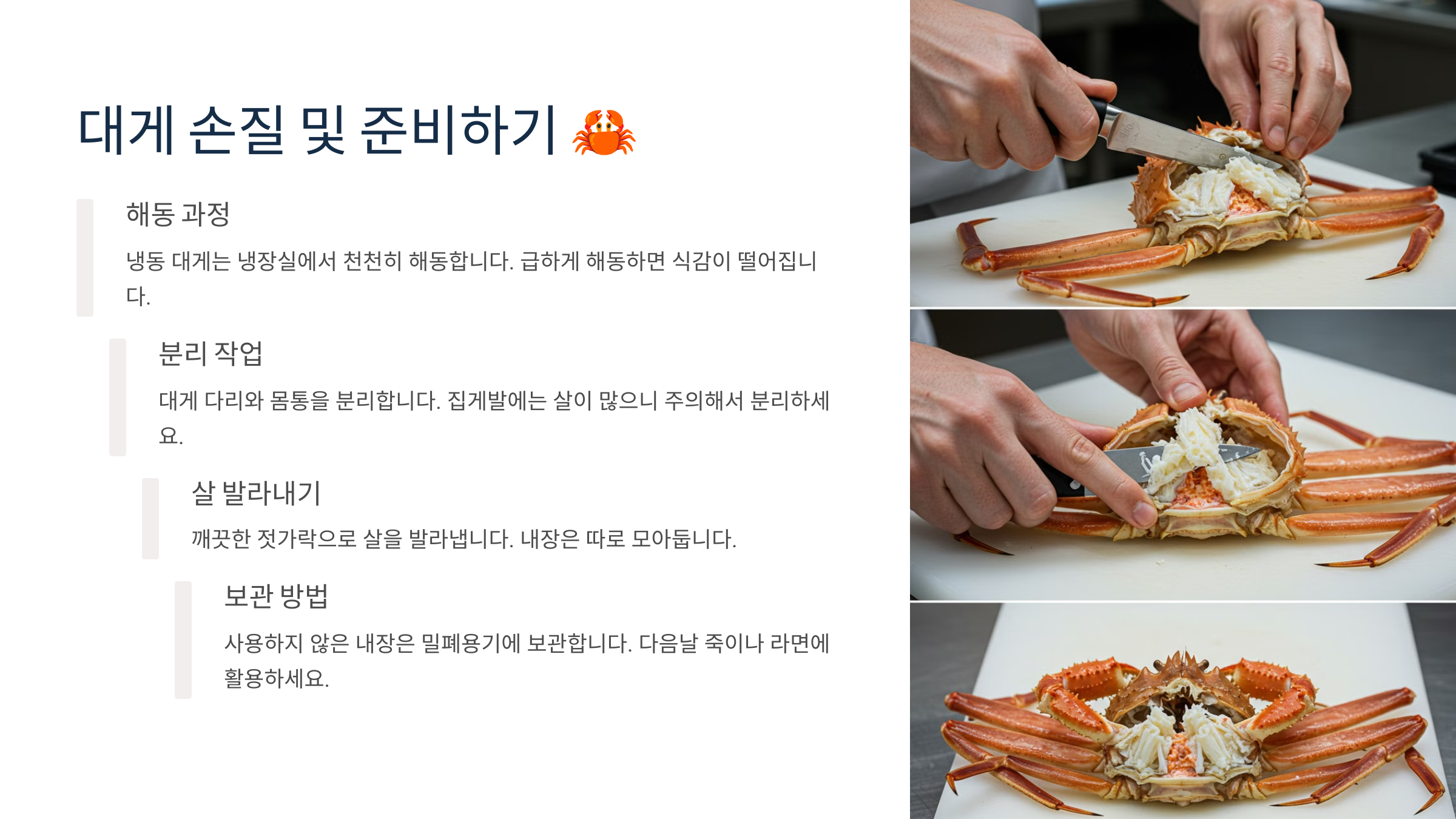 - 대게 내장 활용: 대게 내장을 추가하면 더욱 진한 풍미를 즐길 수 있어요. 😋