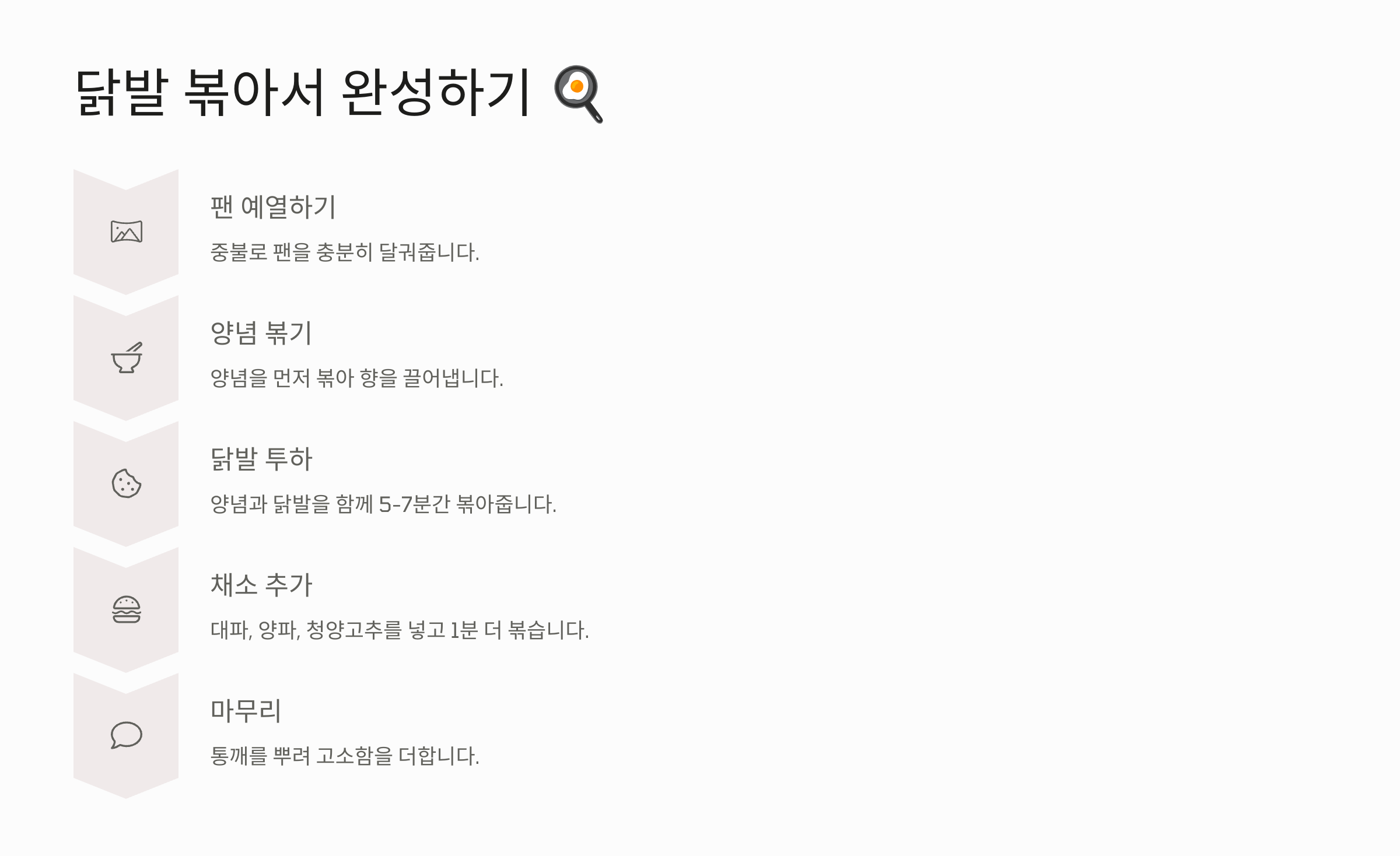 - 불맛 살리기: 마지막에 **센 불에서 30초간 볶으면** 불향이 살아나요.