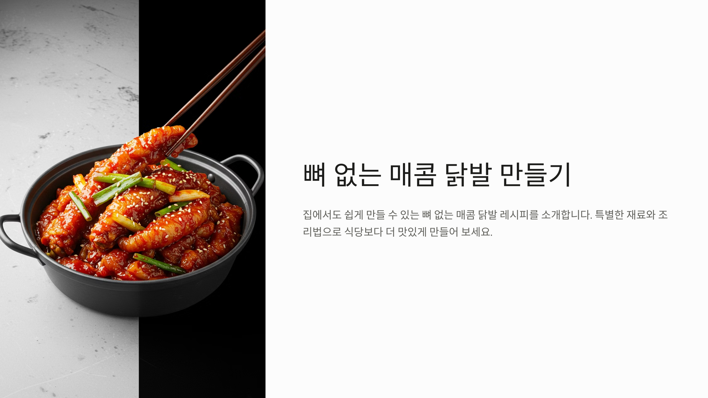 안녕하세요, 여러분! 😊 쫄깃한 식감과 화끈한 매운맛이 매력적인 **뼈 없는 닭발**! 술안주로도, 스트레스 해소용 매운 음식으로도 최고인데요. 오늘은 **맛있고 간편하게 만들 수 있는 뼈 없는 닭발 황금 레시피**를 소개해드릴게요! 🍗🔥