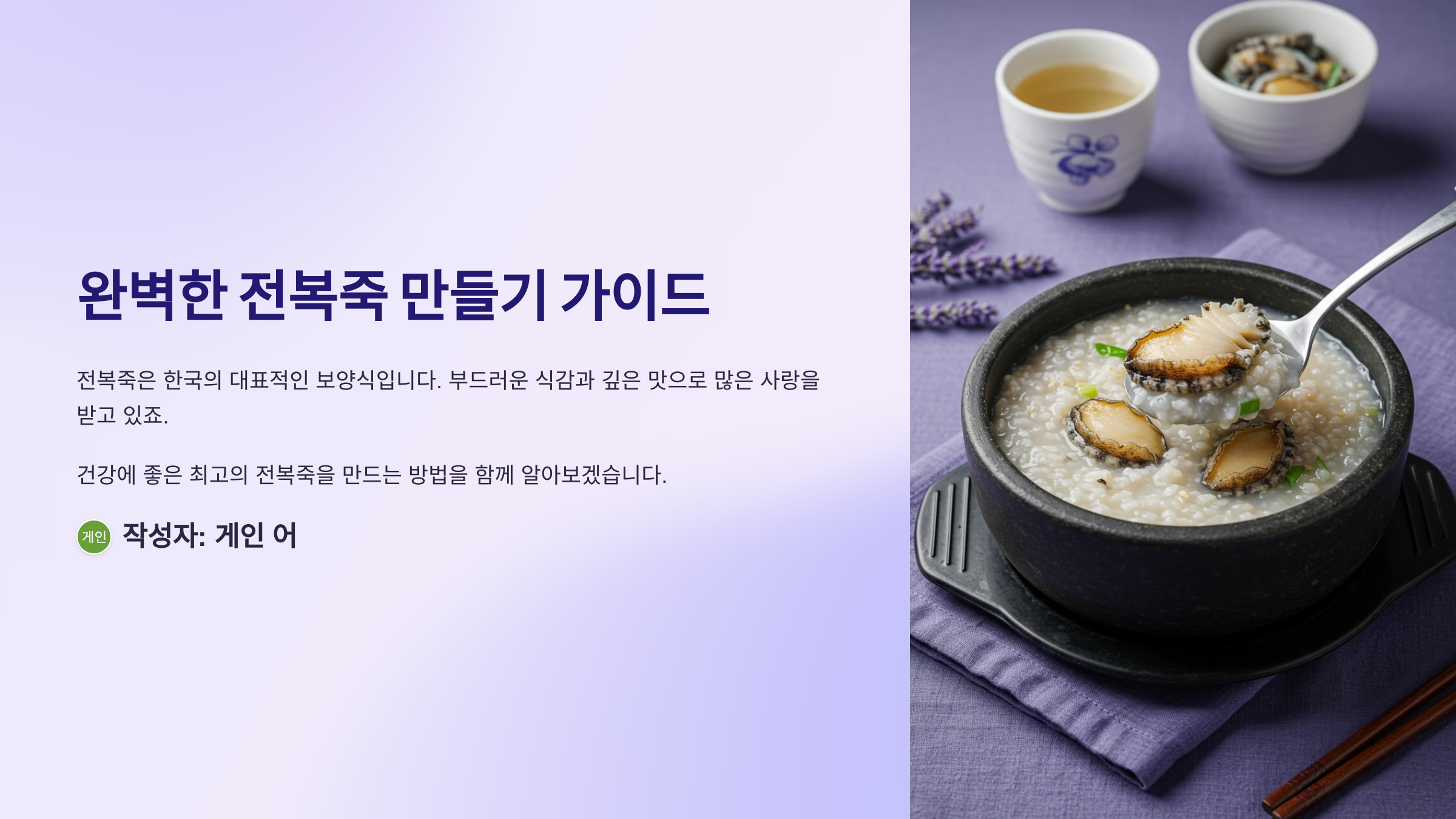 안녕하세요 여러분! 몸이 허하거나 특별한 보양식이 필요할 때, 전복죽만 한 게 없죠? 💪