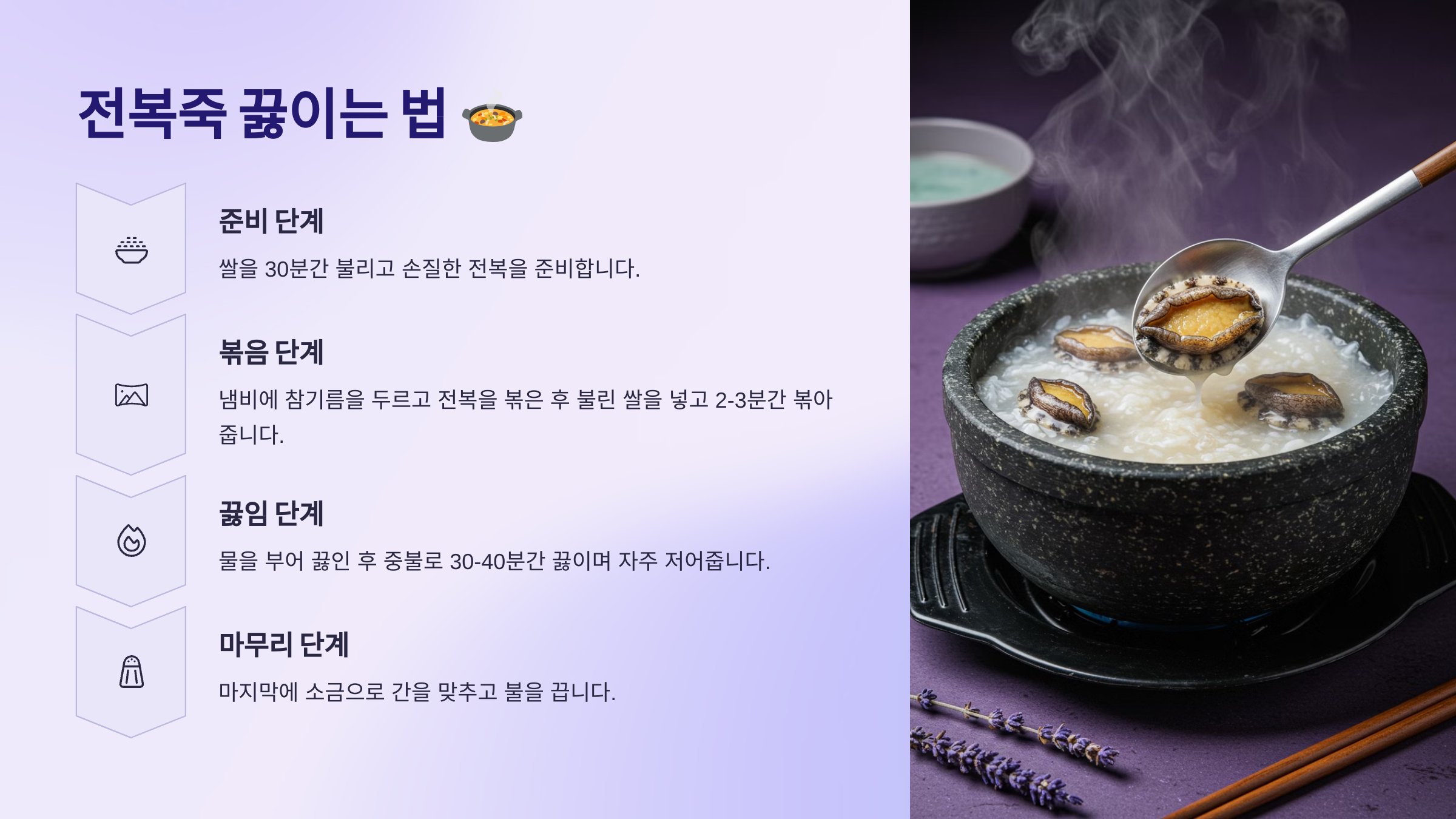 이제 본격적으로 전복죽을 끓여볼까요? 차근차근 따라 해보세요!