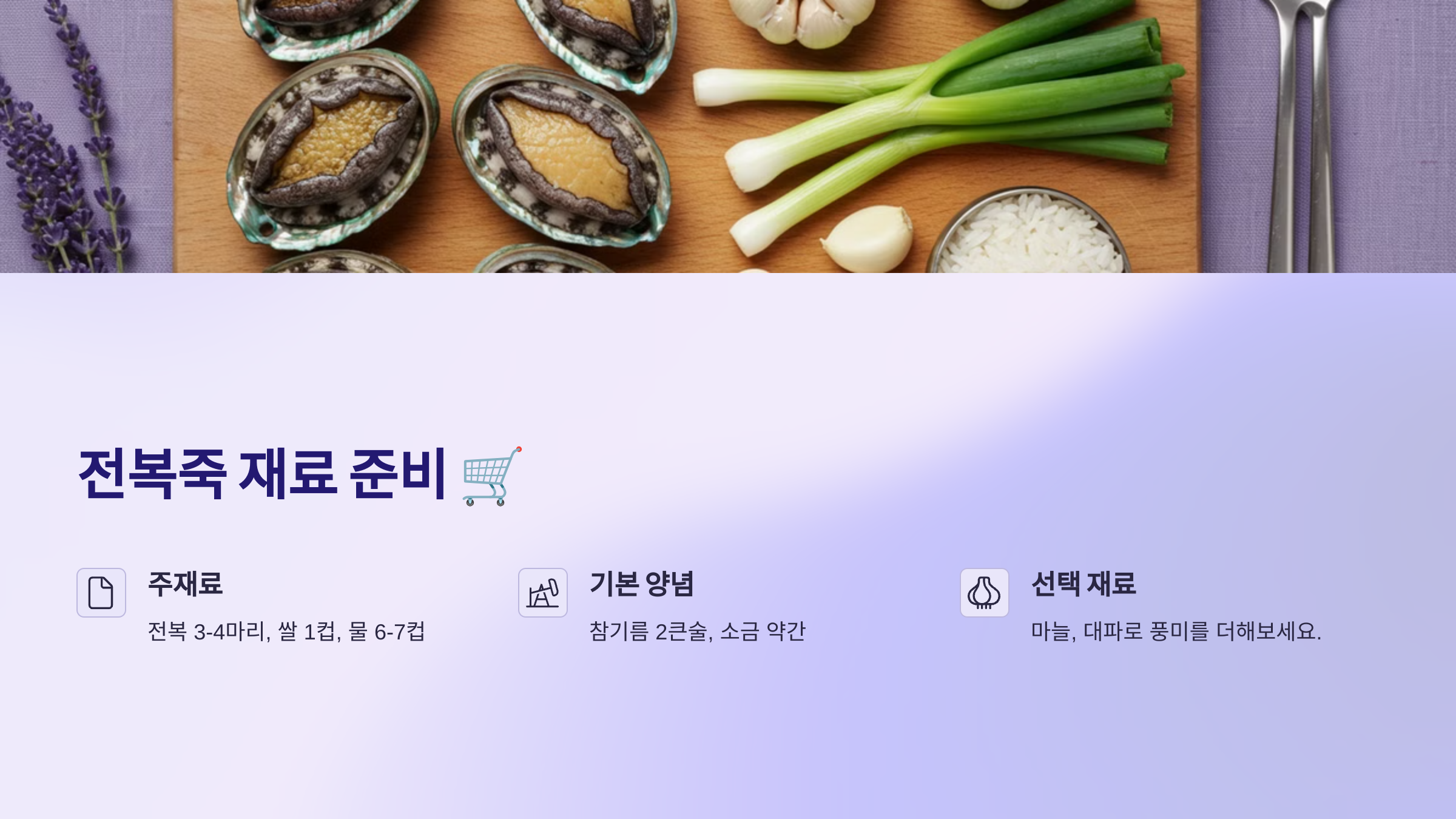 1. 전복죽 재료 준비 🛒