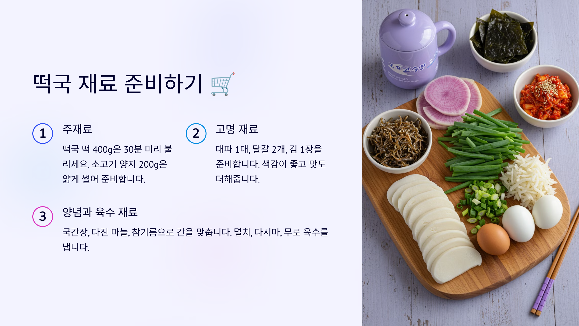 1. 떡국 재료 준비하기 🛒