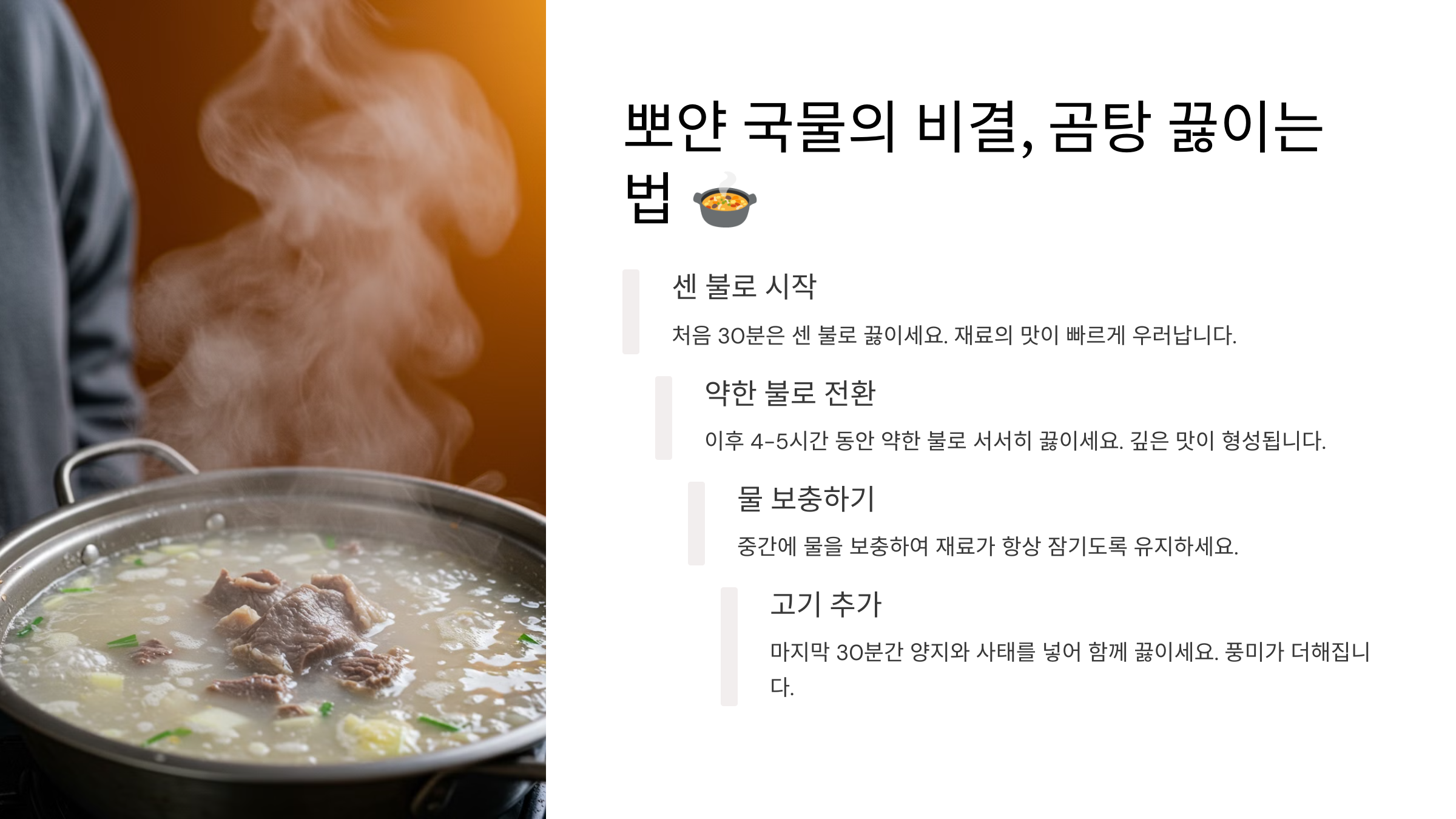🍲 뽀얀 국물의 비결, 곰탕 끓이는 법