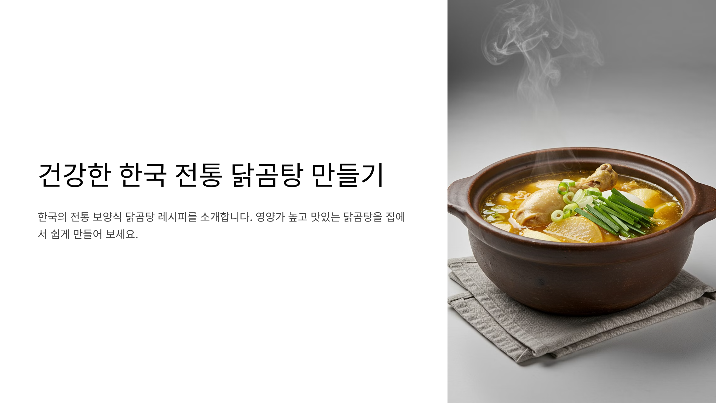 오늘은 특별한 재료 없이도 집에서 쉽게 끓일 수 있는 닭곰탕 황금 레시피를 소개할게요.