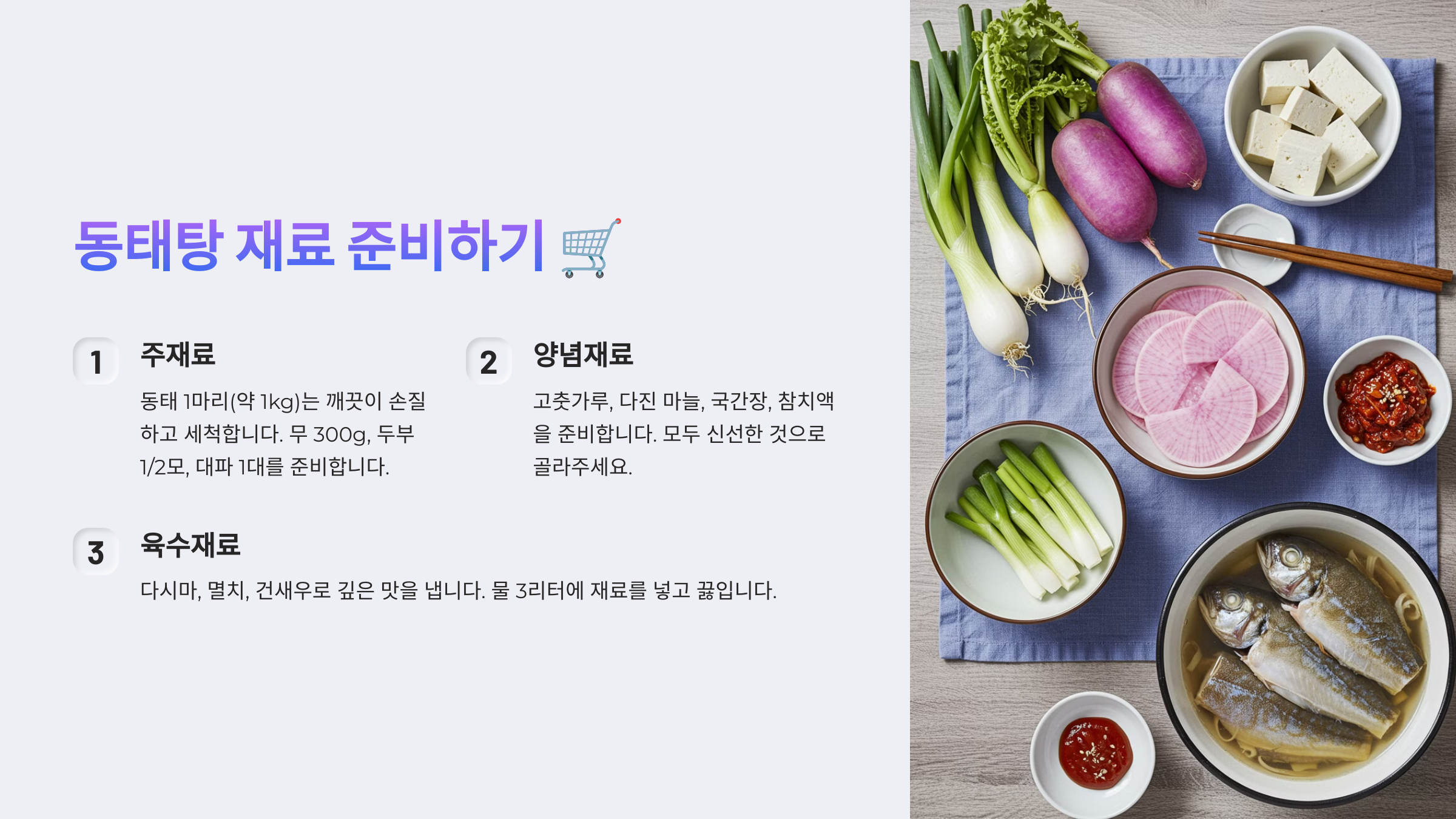 1. 동태탕 재료 준비하기 🛒