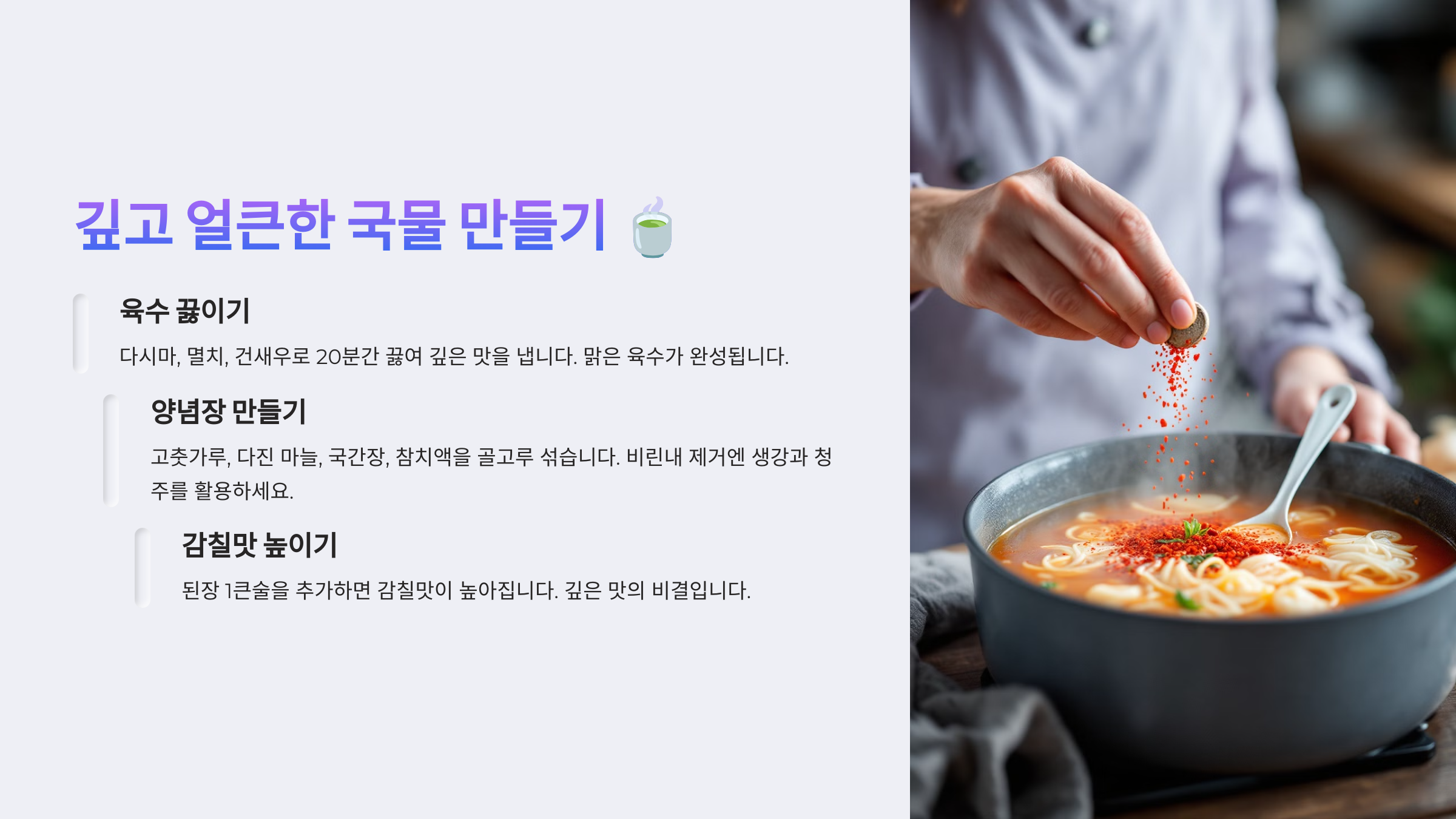 2. 깊고 얼큰한 국물 만들기 🍵