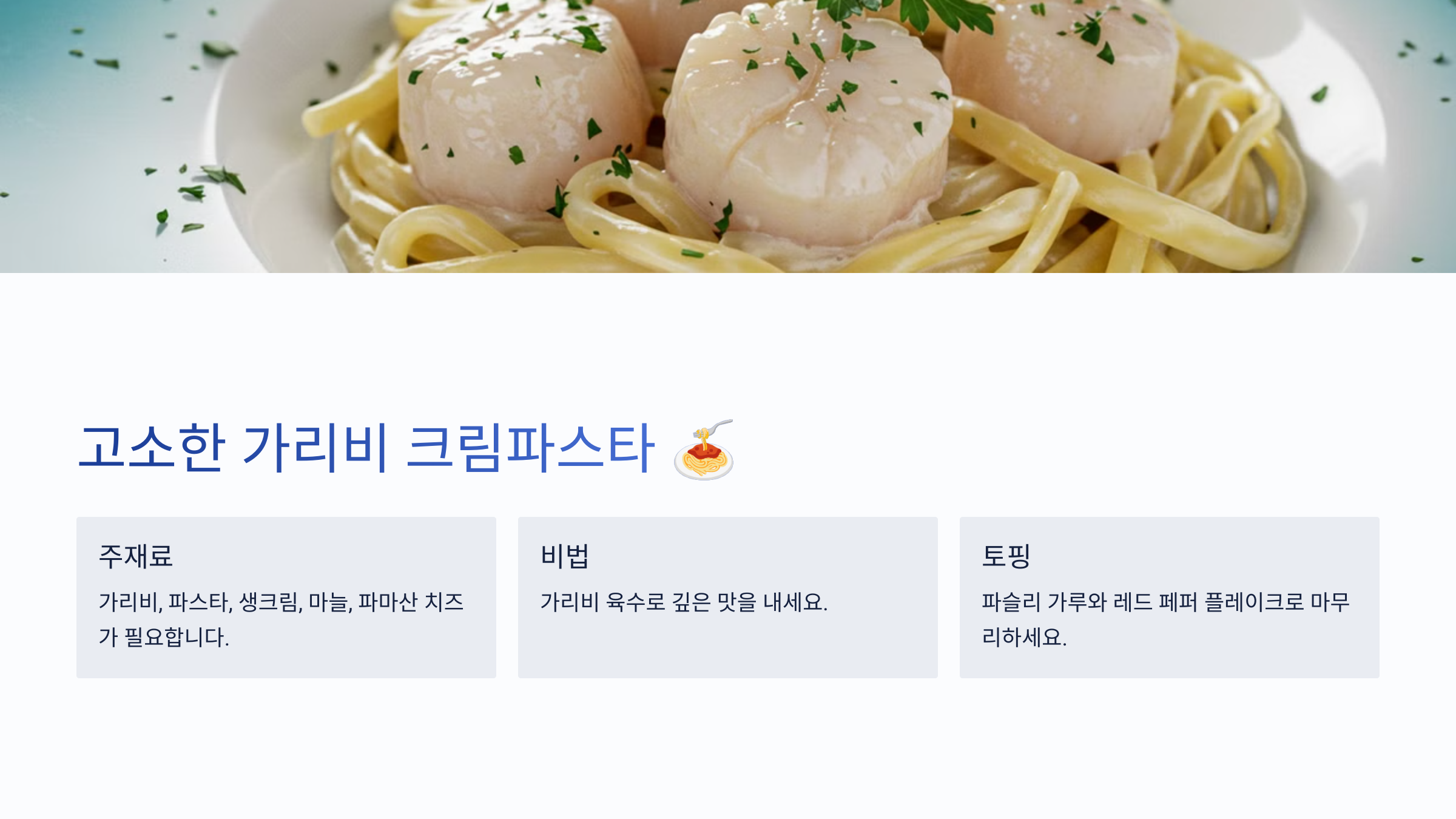 부드러운 크림소스와 가리비가 환상적인 조화를 이루는 파스타! 🍽️