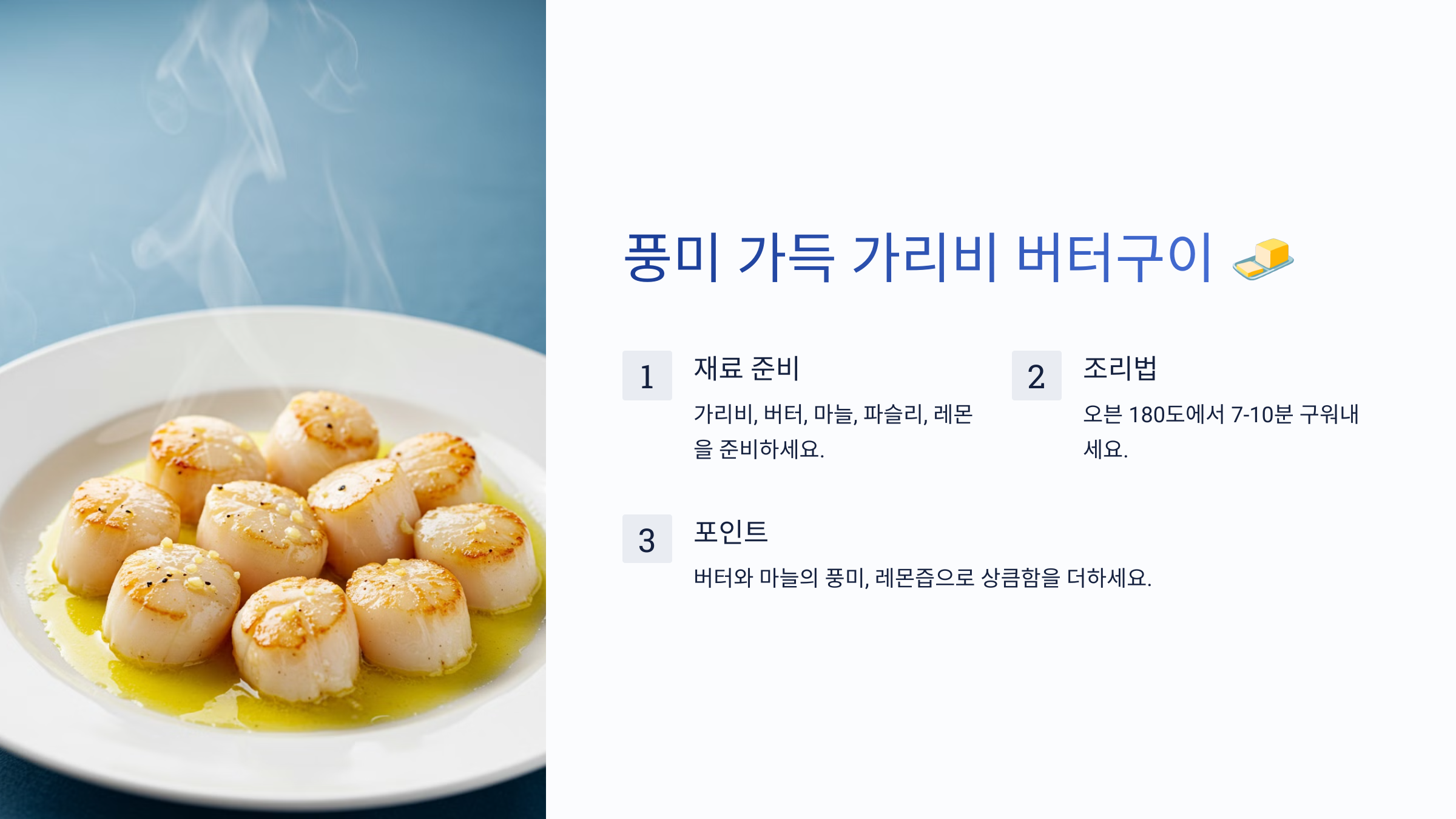 버터의 고소함과 가리비의 감칠맛이 어우러진 버터구이! 🍽️