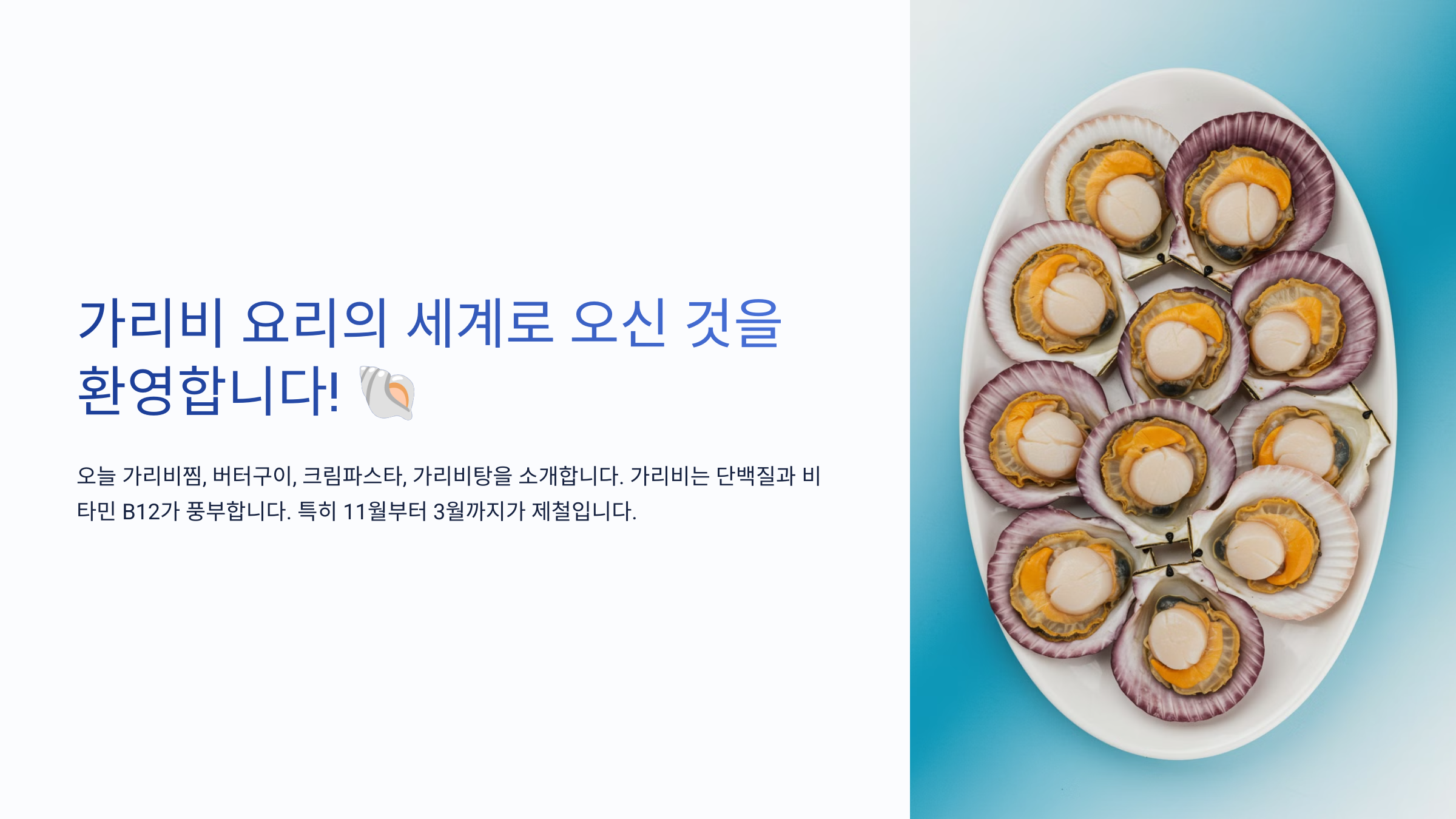 오늘은 맛있고 손쉽게 만들 수 있는 가리비요리를 소개해드렸어요! 🦪