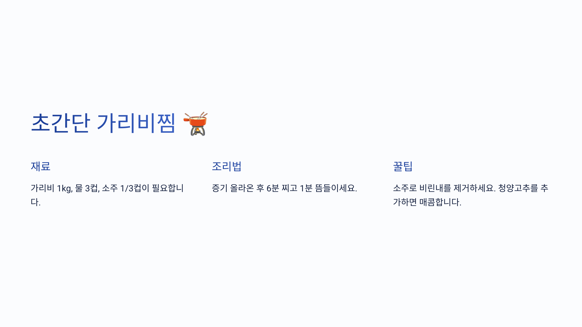 - 가리비는 얼마나 익혀야 하나요? 5~7분 정도 찌면 충분하며, 너무 오래 익히면 질겨질 수 있어요.