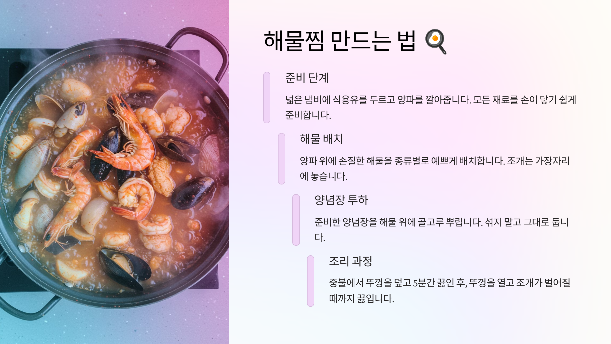 오늘은 바다의 풍미를 가득 담은 해물찜 레시피를 소개해드렸어요!