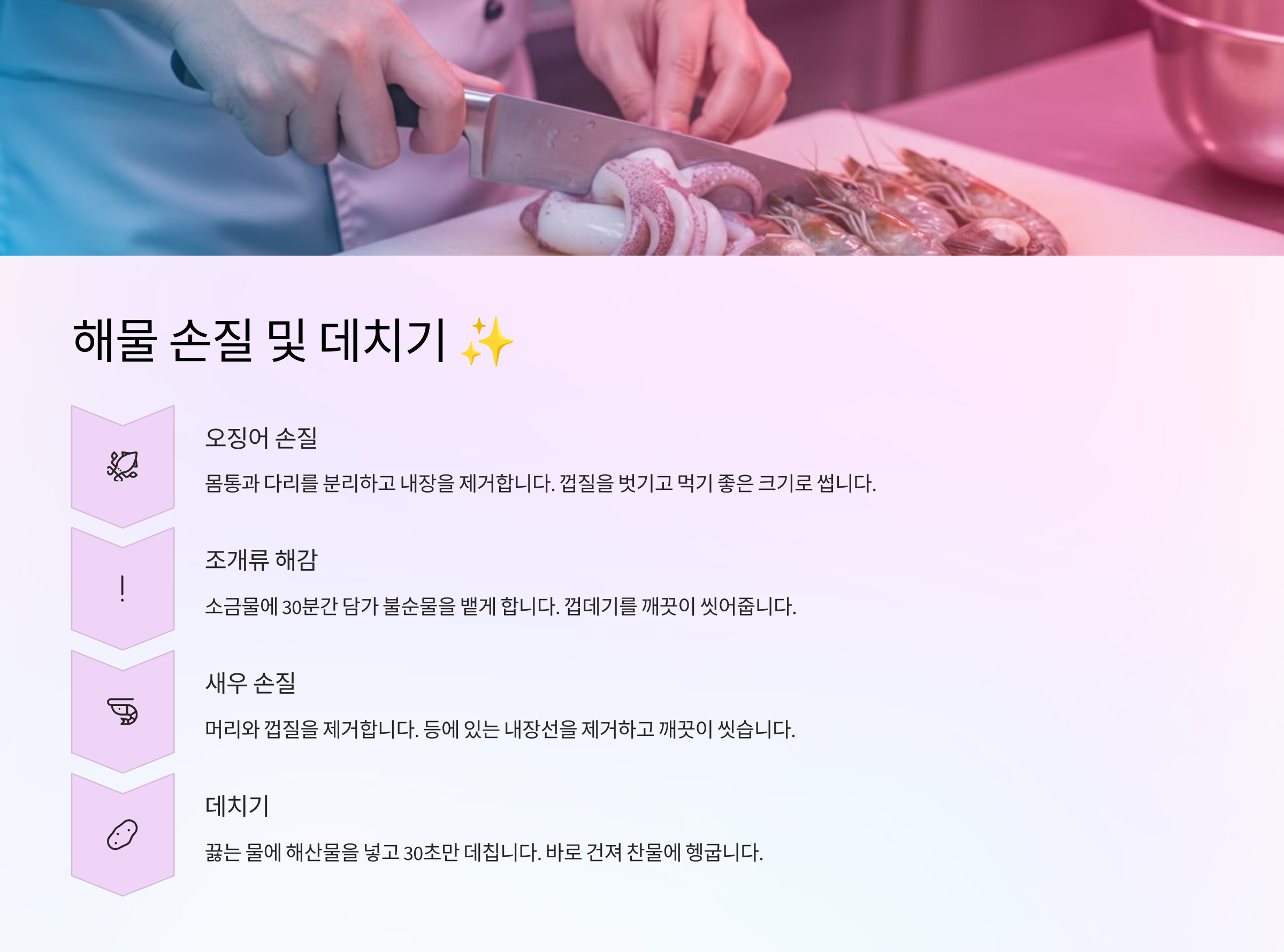 2. 해물 손질 및 데치기 ✨