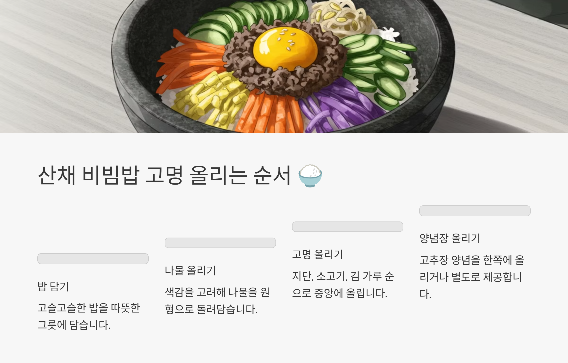 산채 비빔밥 고명 올리는 순서 🍚