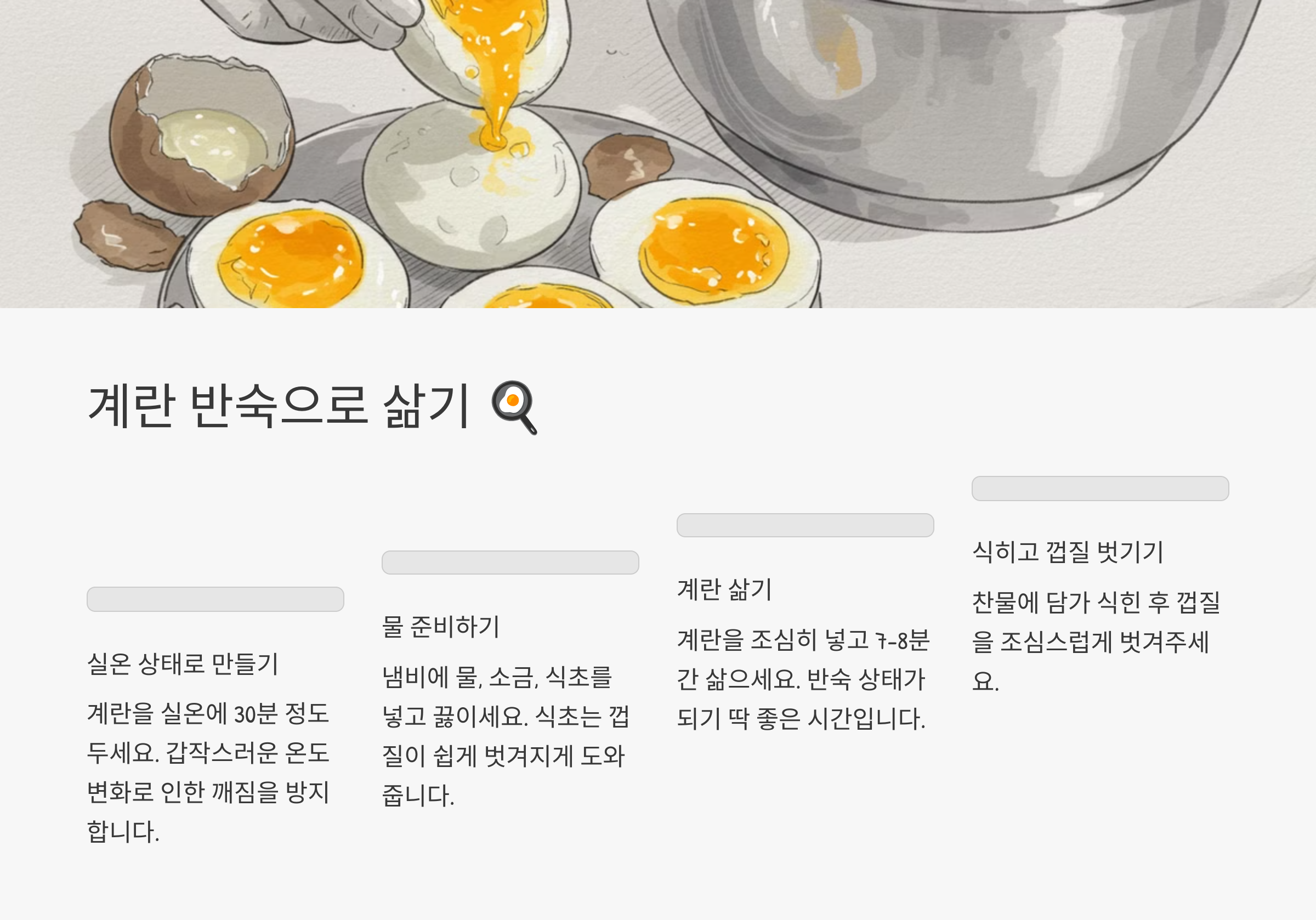 - 너무 오래 끓이면 반숙이 익어버리니 조심하세요!