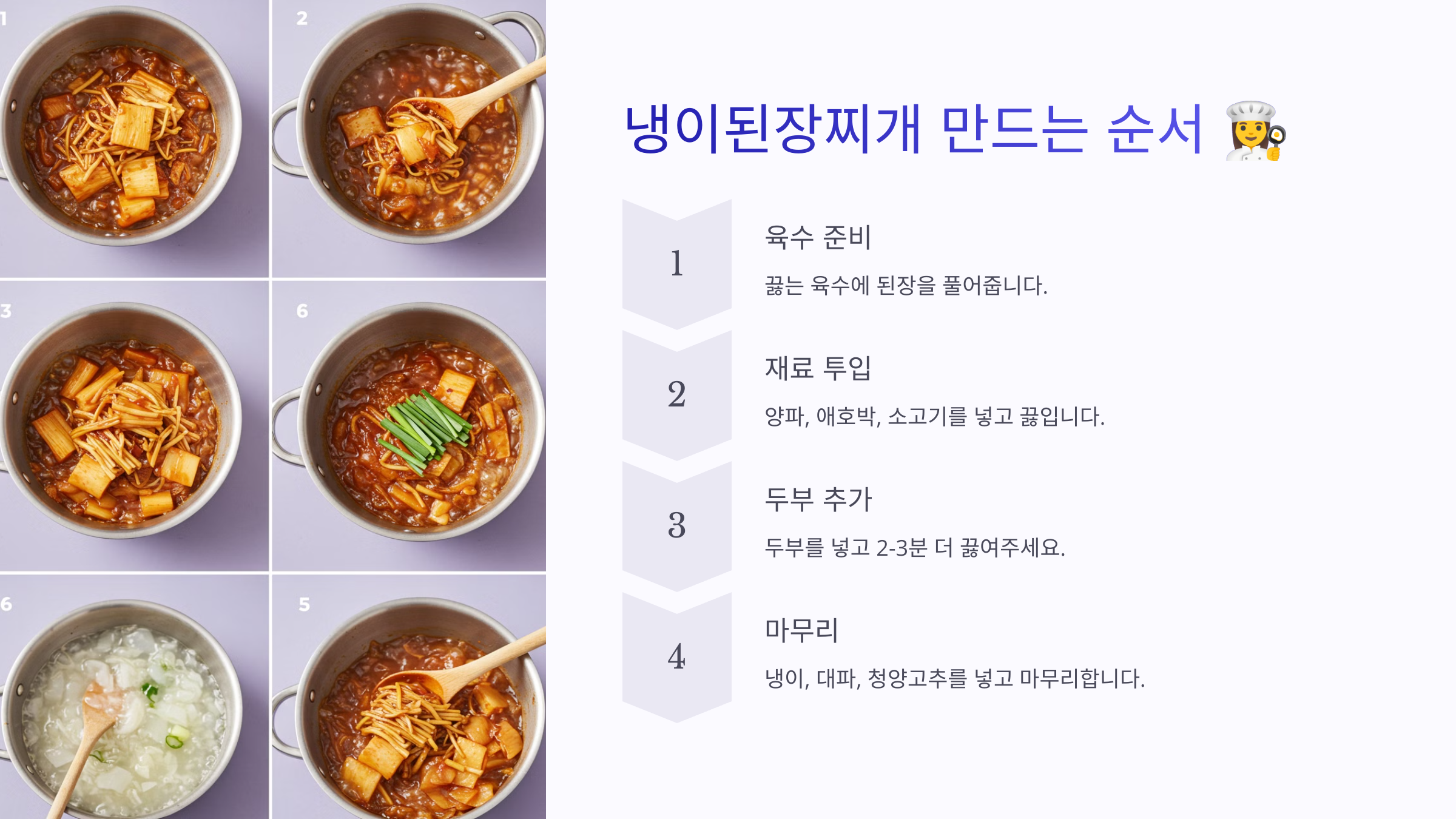 - 완성된 냉이된장찌개를 맛있게 즐겨보세요! 🍲