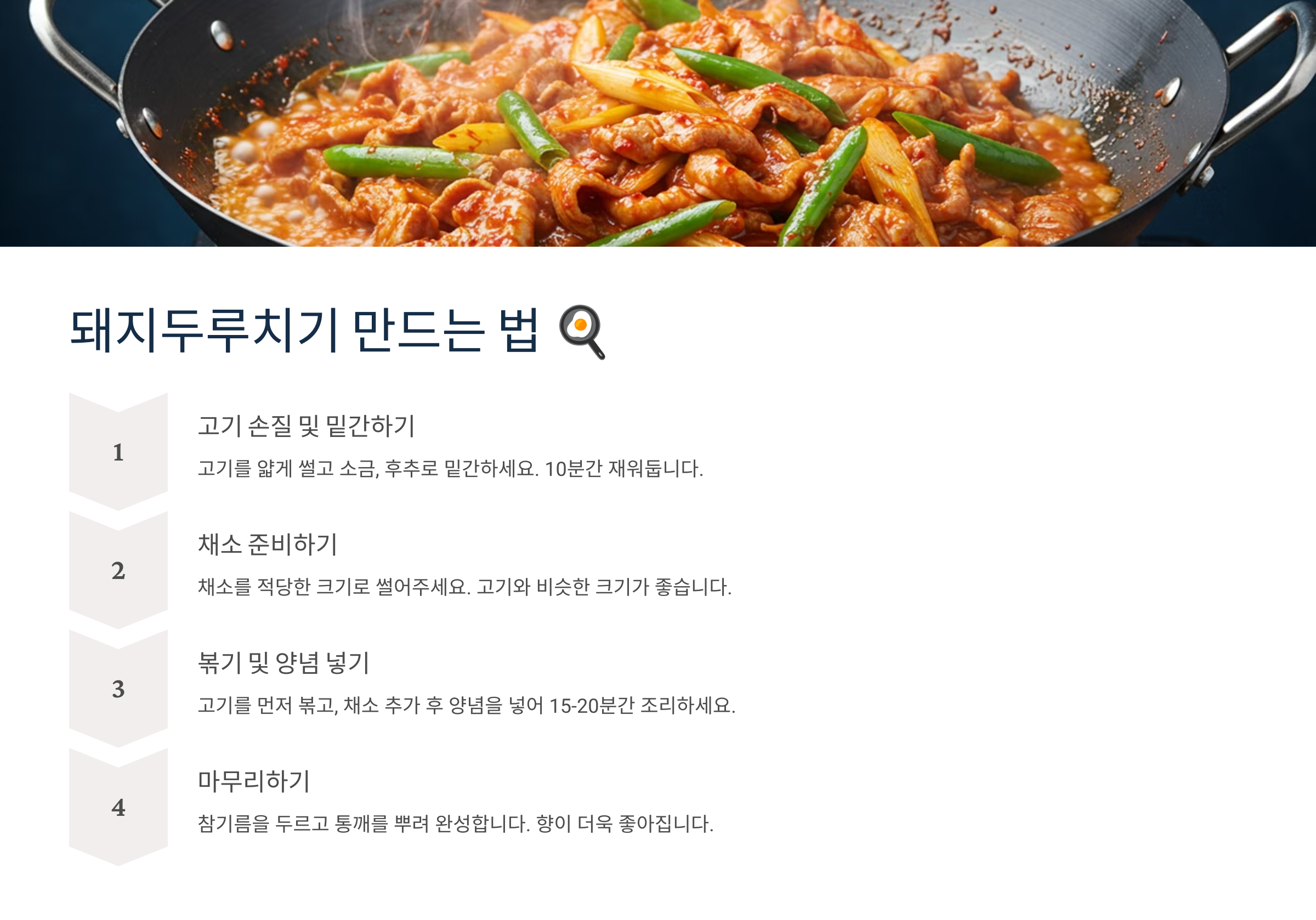 이제 여러분도 집에서 매콤달콤한 돼지두루치기를 쉽게 만들 수 있어요! 🍽️