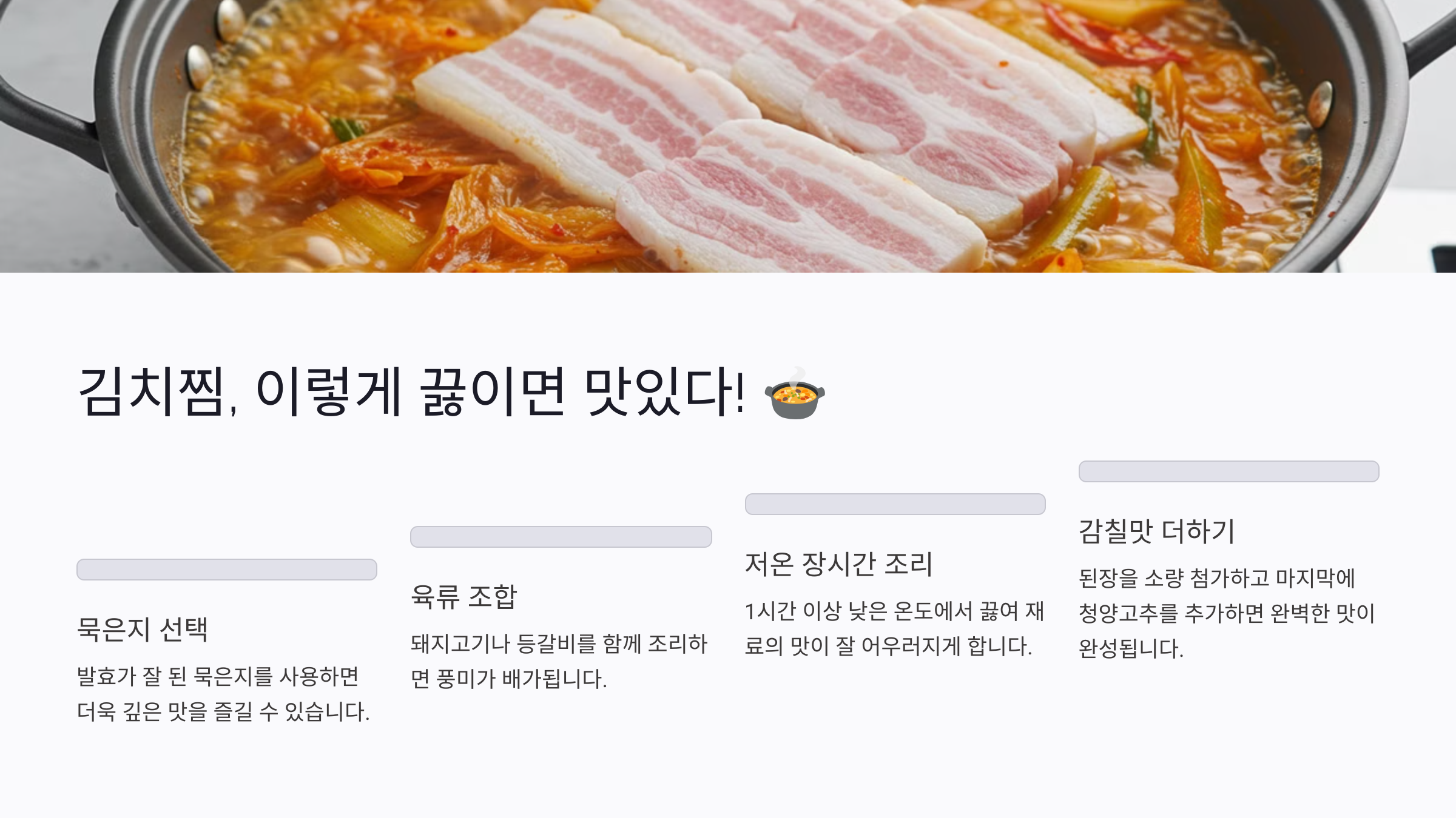 여러분도 오늘 저녁, 김치찜 한 솥 끓여보시는 건 어떨까요? 혹시 자신만의 특별한 김치찜 레시피나 맛집이 있다면 댓글로 공유해주세요! 함께 이야기 나누면서 더 맛있는 김치찜을 즐길 수 있겠죠? 😍