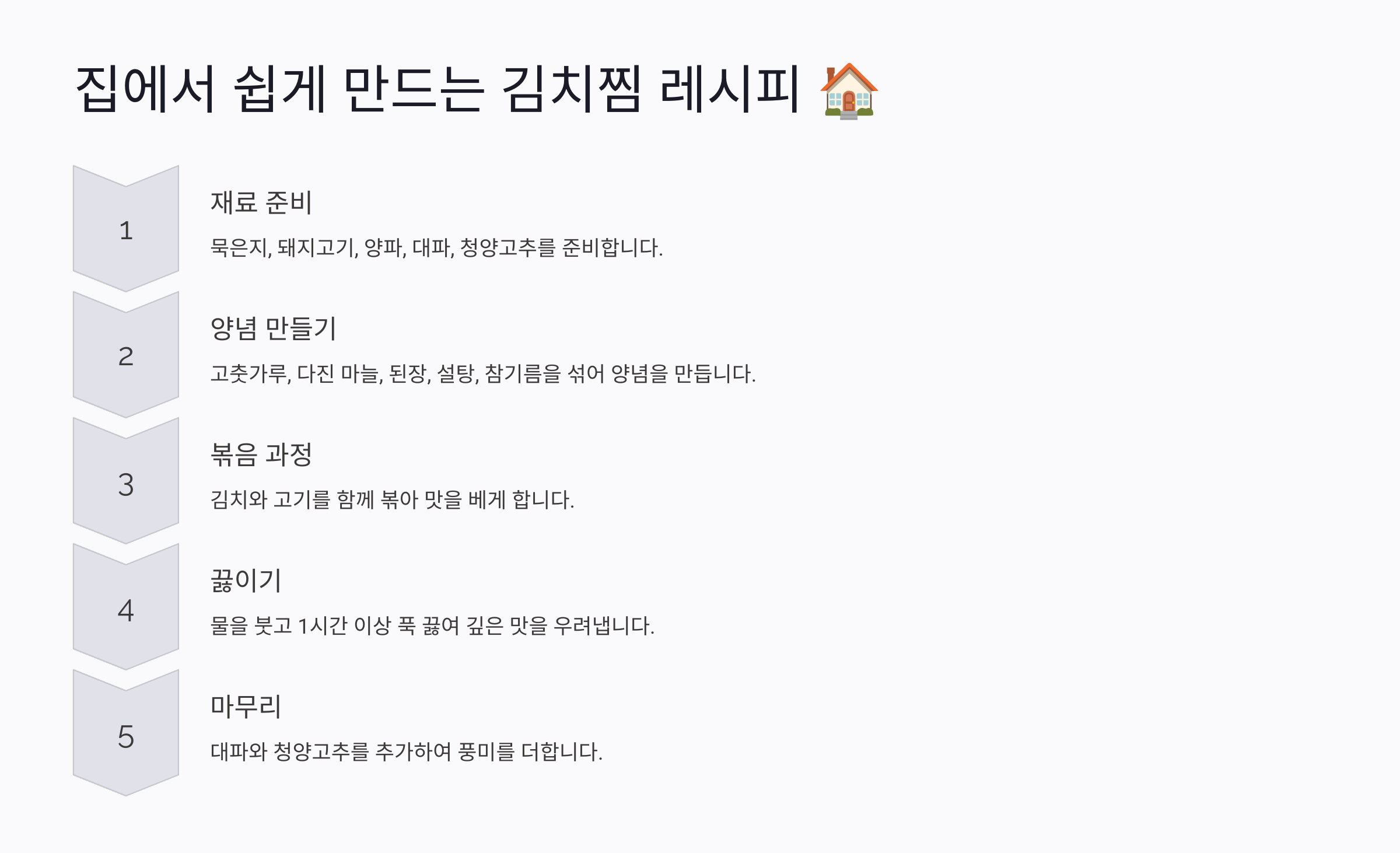 - 김치와 고기 배치: 냄비 바닥에 돼지고기를 깔고, 그 위에 김치를 덮어야 육즙이 김치에 배어 더욱 맛있어져요.