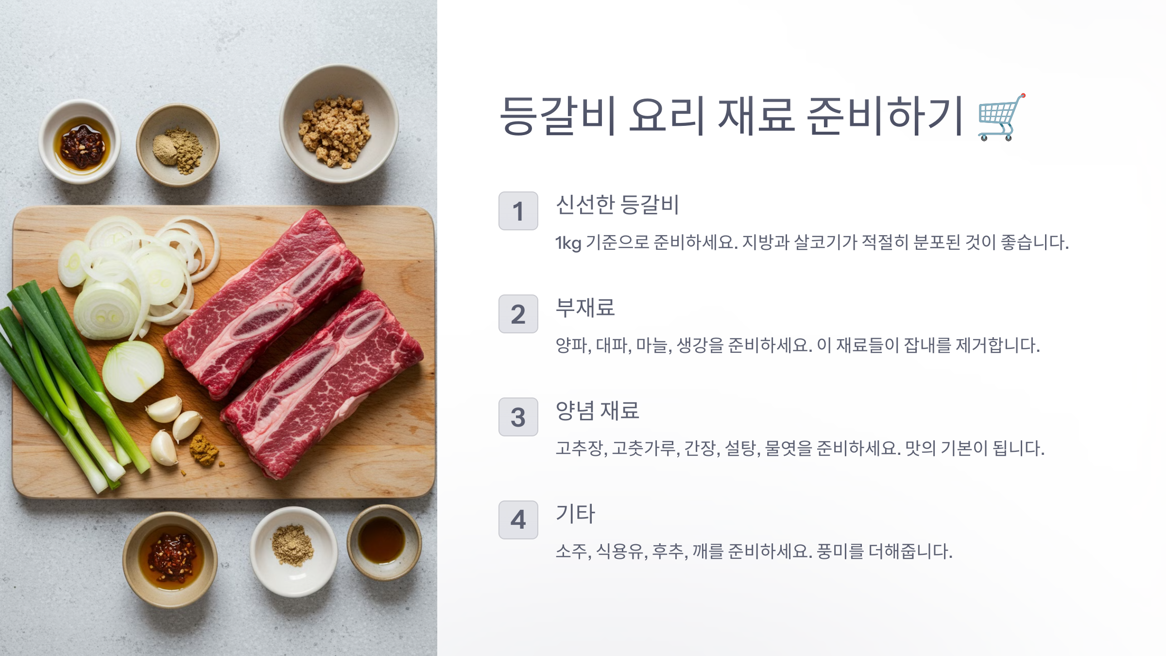 1. 등갈비 요리 재료 준비하기 🛒