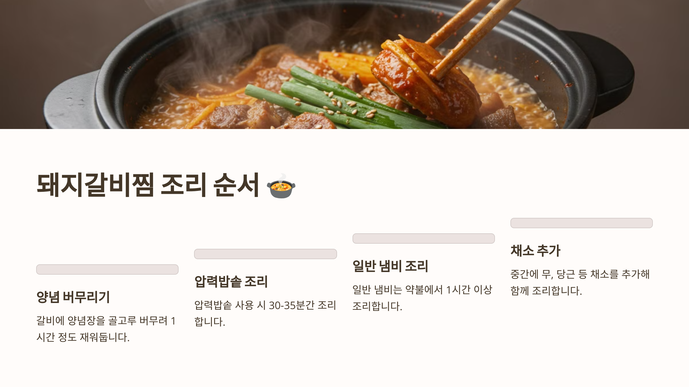 오늘은 집에서도 실패 없이 만들 수 있는 돼지갈비찜 황금레시피를 소개해드릴게요.