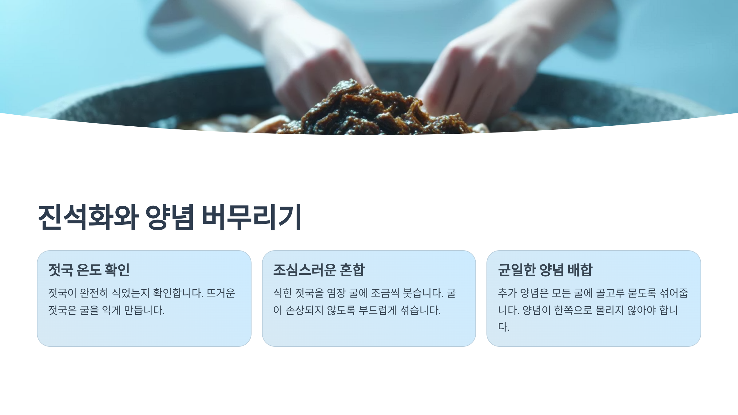 이제 거의 다 왔어요! 다음은 진석화젓을 맛있게 익히고 오래 보관하는 숙성 노하우 알려드릴게요. 제대로 발효시키는 방법, 바로 다음에 알려드릴게요! 🧊