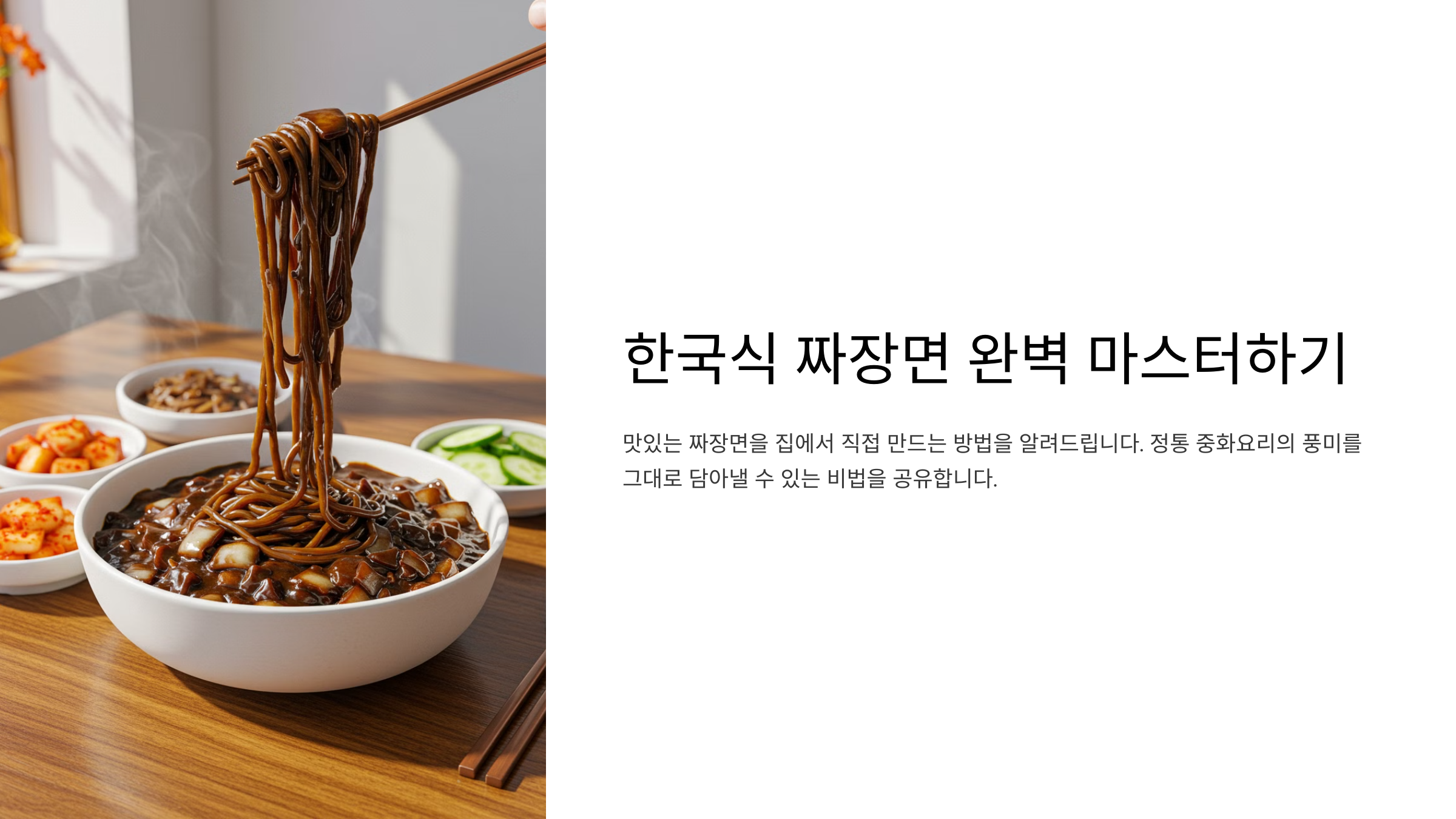 안녕하세요 여러분! 혹시 배달 음식을 시킬까 고민하다가 '그냥 내가 만들면 안 될까?' 하고 생각해본 적 있으신가요? 특히 짜장면은 많은 분들이 사랑하는 국민 음식인데요, 오늘은 제가 여러분께 집에서도 중화요리점 맛 그대로 재현할 수 있는 완벽한 짜장면 레시피를 소개해드리려고 합니다! 재료부터 만드는 방법까지 상세히 알려드릴 테니 따라 하시면 정말 쉽게 맛있는 짜장면을 즐기실 수 있을 거예요!