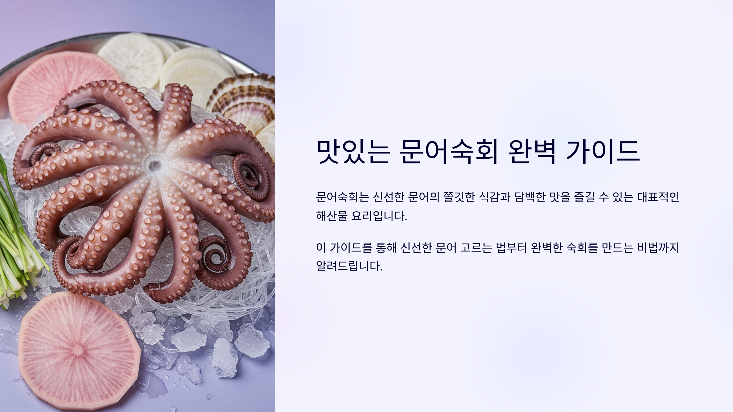 안녕하세요, 여러분! 😊 쫄깃한 식감과 깊은 감칠맛이 일품인 **문어숙회**, 좋아하시나요? 오늘은 집에서도 간단하게 만들 수 있는 **탱글탱글한 문어숙회 레시피**를 소개해드릴게요. 문어 삶는 법부터 맛있게 먹는 방법까지 알려드릴 테니 끝까지 함께해 주세요! 🐙🔥