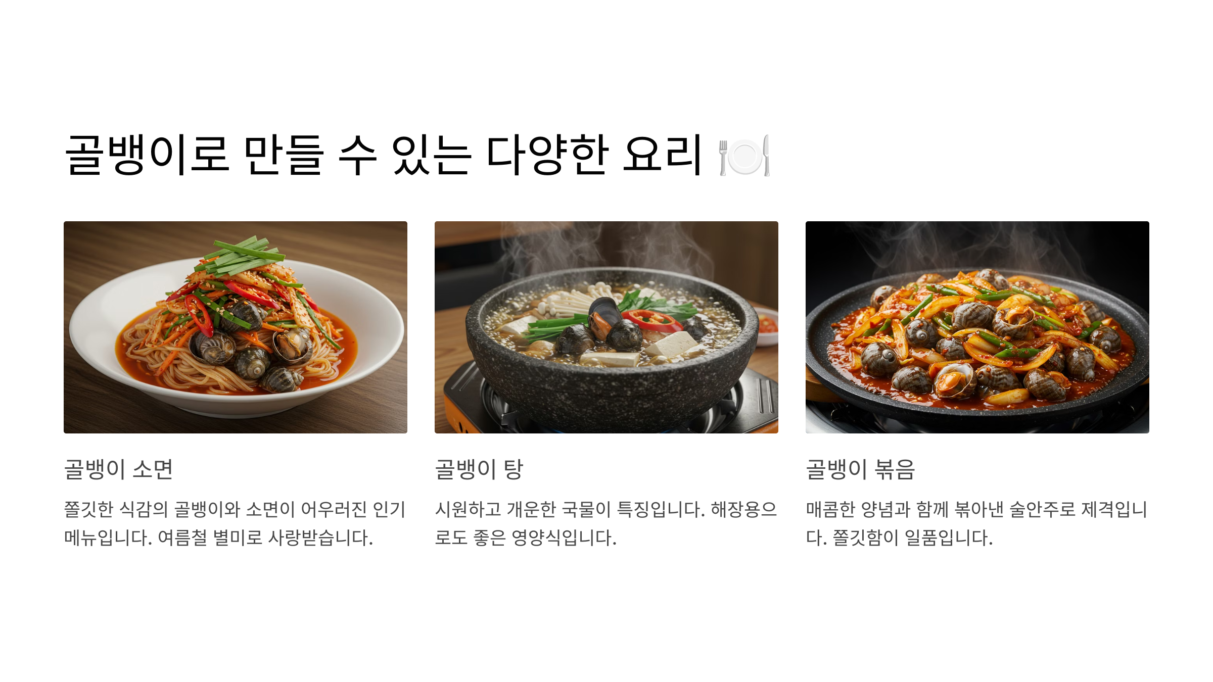 - 골뱅이로 만들 수 있는 다양한 요리 🍽