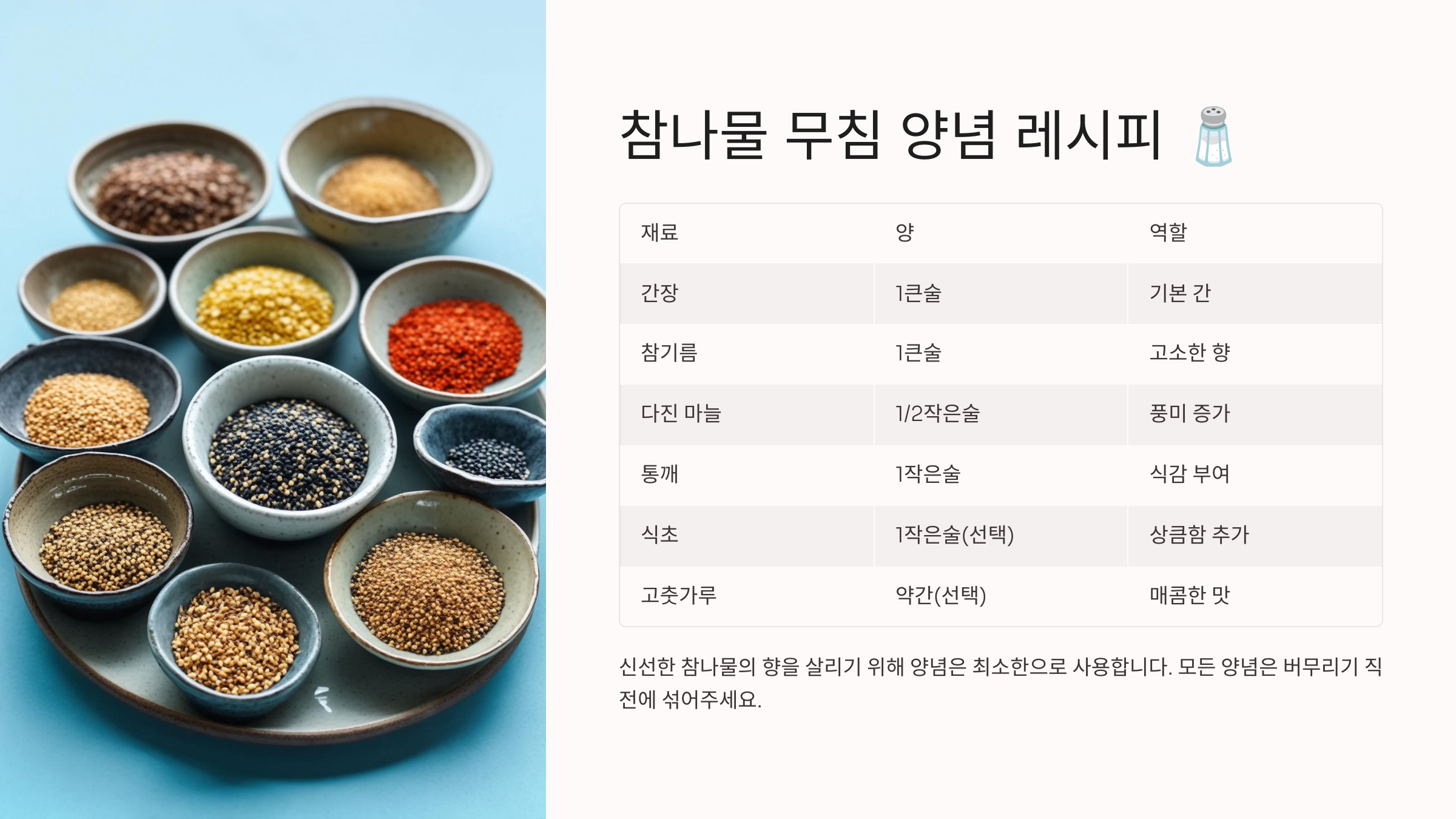 참나물 무침 양념 레시피 🧂