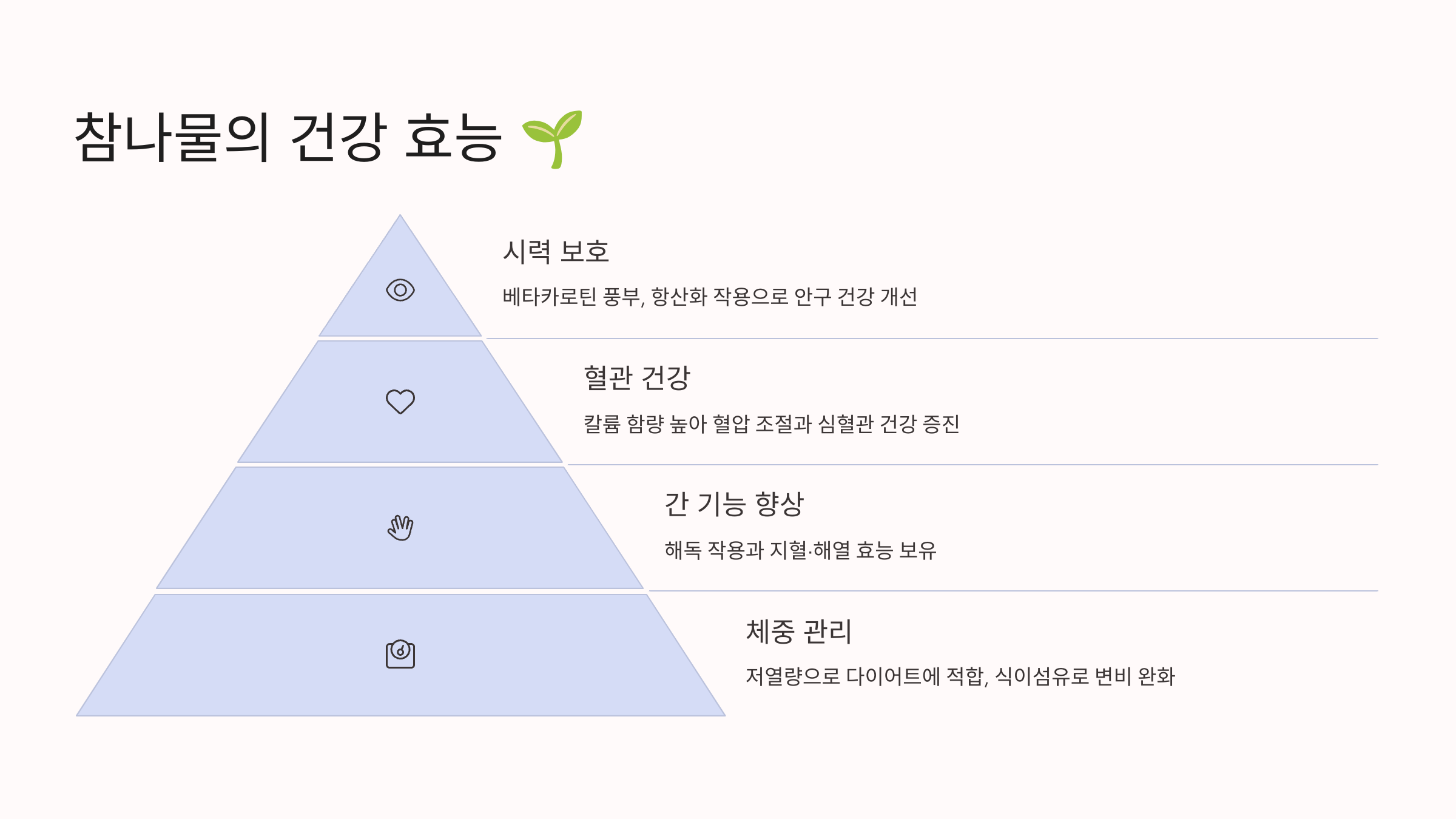 | 참나물 | 비타민 A와 C가 풍부하여 면역력 강화에 도움 |