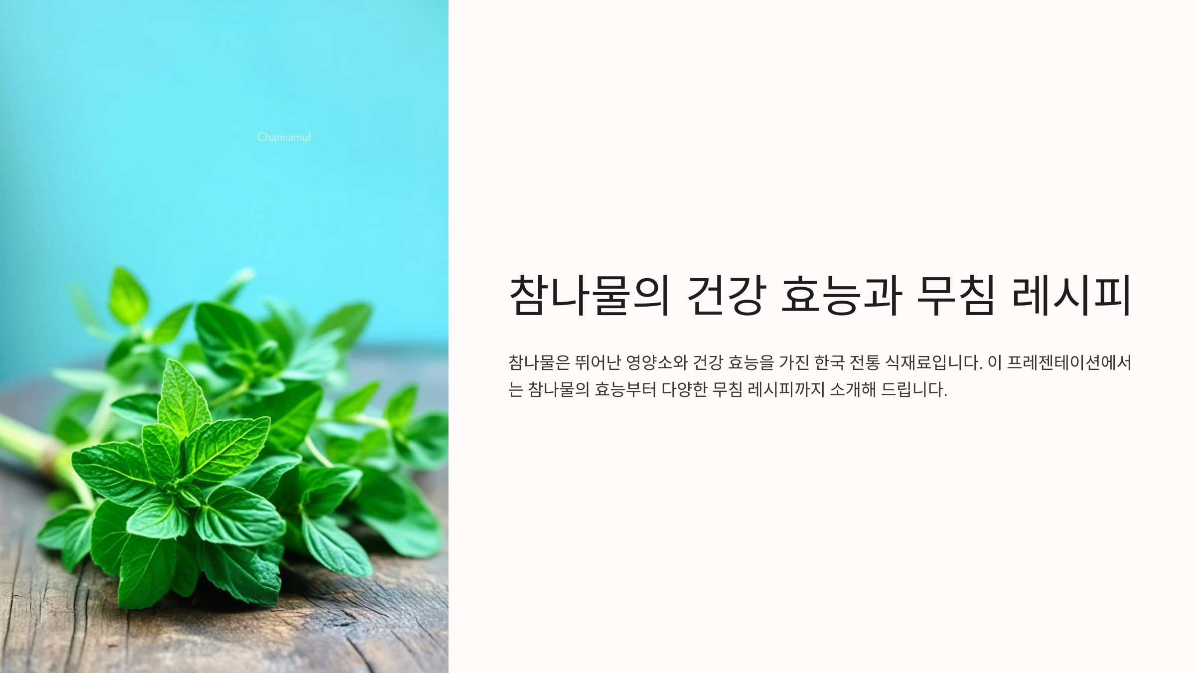 "참나물은 자연의 신선함을 그대로 담고 있어, 무침으로 만들었을 때 그 진가를 발휘합니다. 간단한 조리법에도 불구하고 그 맛은 결코 단순하지 않죠."